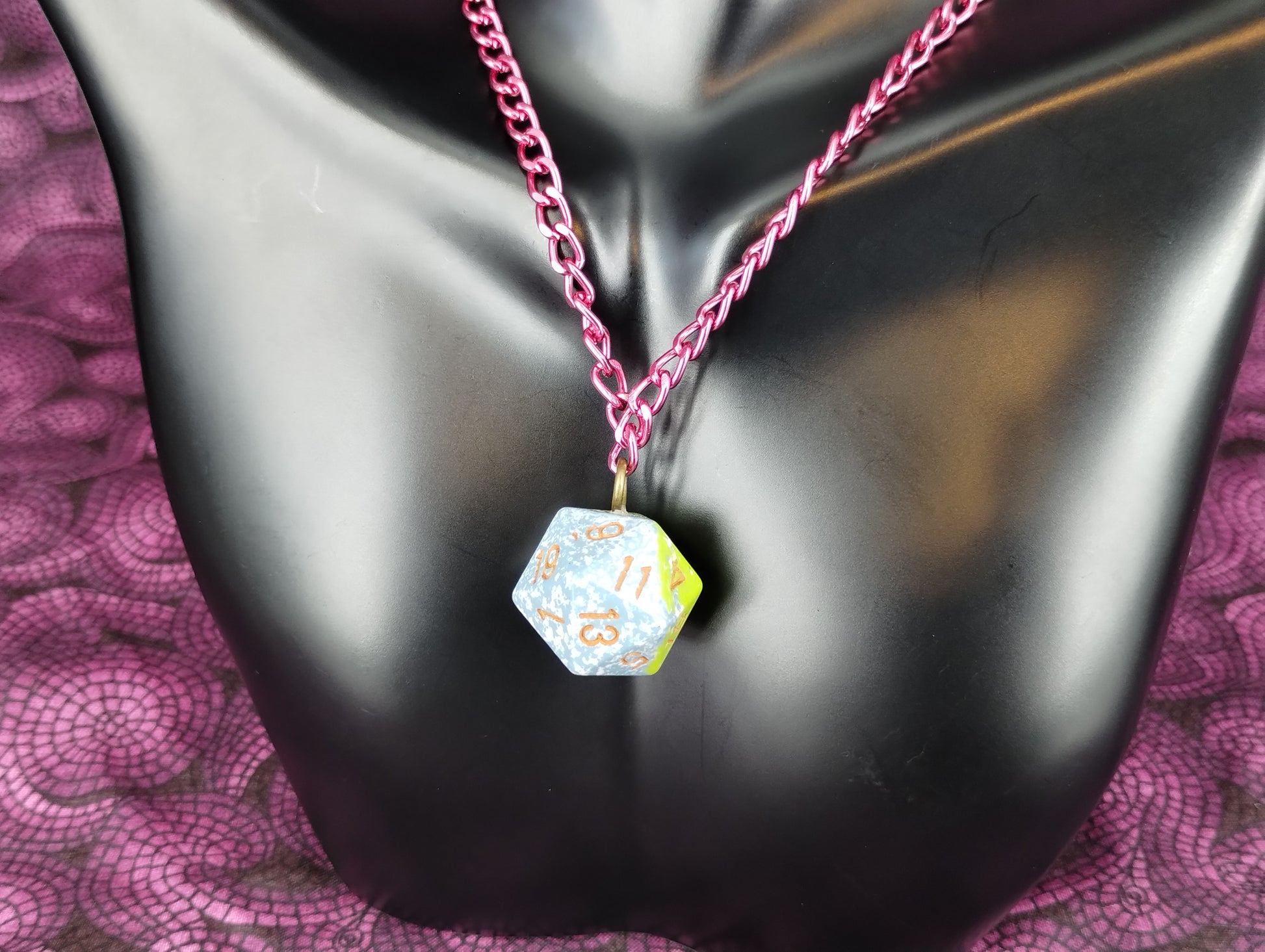 Single die pendants on chain.
